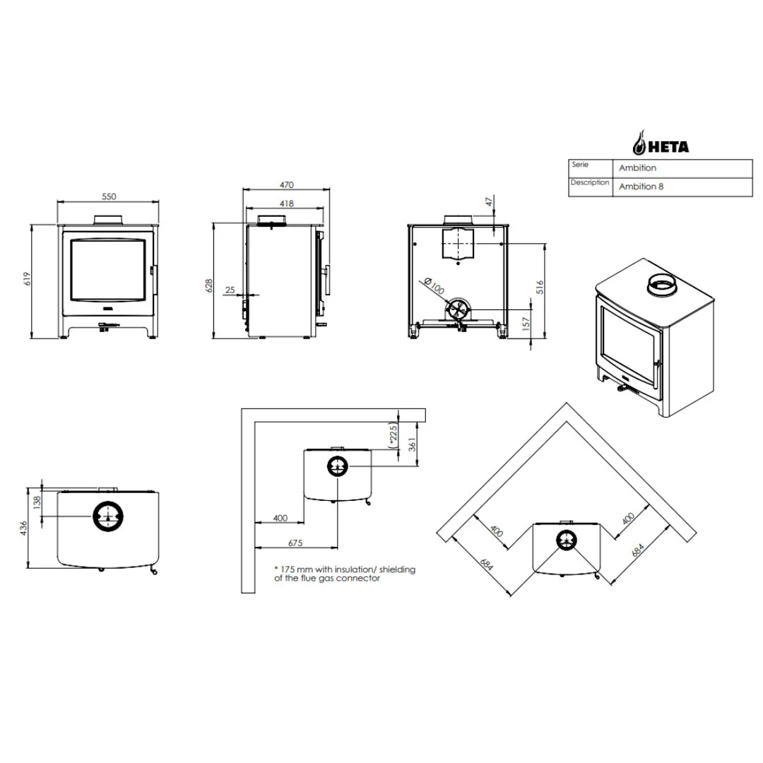 The HETA Ambition 8 is a powerful and stylish wood-burning stove, designed to enhance any living space with superior performance and modern aesthetics. Featuring an expansive glass viewing window, it provides an unobstructed view of the flames, creating a warm and inviting atmosphere.