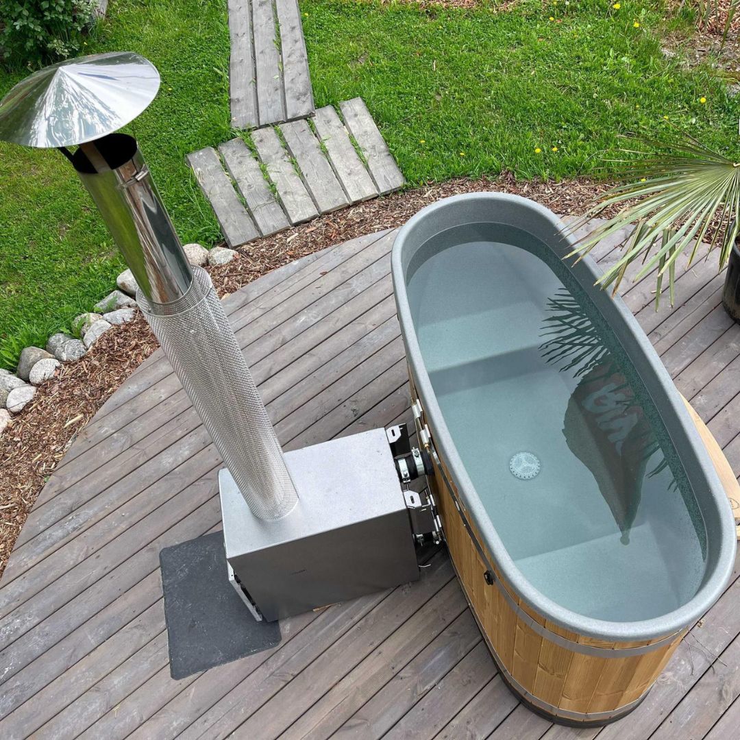 Each package includes everything you need: the tub, heater, adjustable air vent, 120 mm x 1.5 m flue set with 1 m heat shield and weatherproof cowl, thermometer and ash shovel. Compact, stylish, and practical, the Tiny hot tub brings effortless luxury to even the smallest of spaces.